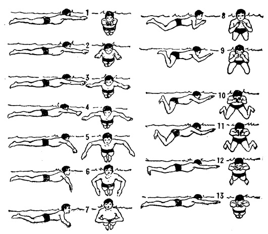这些掌握之后,才能够练习全身配合。有时,还需要用到腰部,如蝶泳,用到头部,如自由泳的翻转转身,头部下压带动身体等。前面结介绍的练习,都是为了学习其它泳姿打下基础,基础等牢固能够使自己更快地学习新的泳姿。